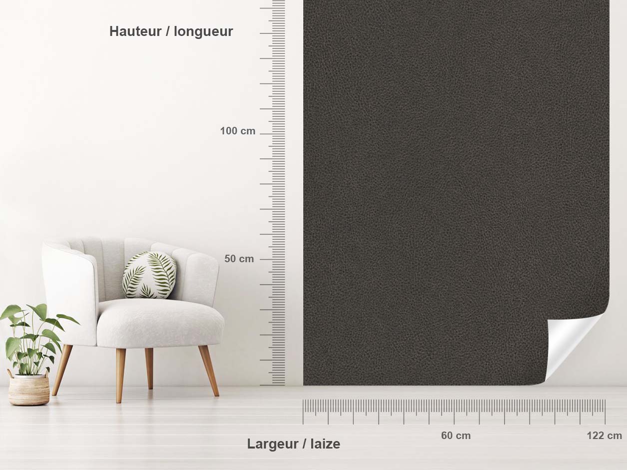 Leather invites itself in your interior for a more original decoration. Thanks to the adhesive coating you can cover a side table, a door or a wall to give a light vintage effect thanks to its matte finish. The adhesive imitates a leather slightly worn by time which has lost its shine. Its grey-brown colour can be combined with different colours. The leather adhesive coating is embossed and imitates the leather effect even to the touch.